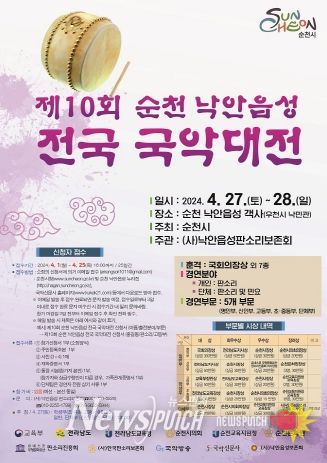 뉴스펀치 김희경 기자 | 순천시는 순천 낙안읍성에서 오는 27일부터 28일까지 개최되는 ‘제10회 순천 낙안읍성 전국 국악대전’ 참가자를 4월 25일까지 접수한다고 밝혔다.