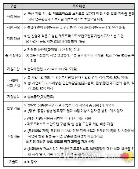 오는 4월 16일에는 제로트러스트 사업 설명회를 개최하며, ‘제로트러스트 도입・확산 지원사업’ 및 ‘제로트러스트 도입·전환 컨설팅’ 사업의 참여를 희망하는 정부・공공 및 기업 관계자를 대상으로 세부 계획을 설명할 계획이다.