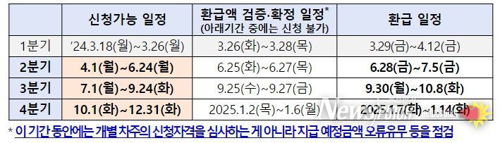 3.18~26일까지 이자환급 신청을 접수한 결과, 1분기에는 약 16.2만명에게 약 1,163억원(잠정치) 규모의 이자가 환급될 것으로 예상된다.(3.29~4.12일) 이는 금년 이자환급 예상액 3천억원의 약 38.8%에 해당하며, 나머지 금액은 당초 계획된 일정에 따라 차주 신청 시 2·3·4분기 말일에 지급될 예정이다.
