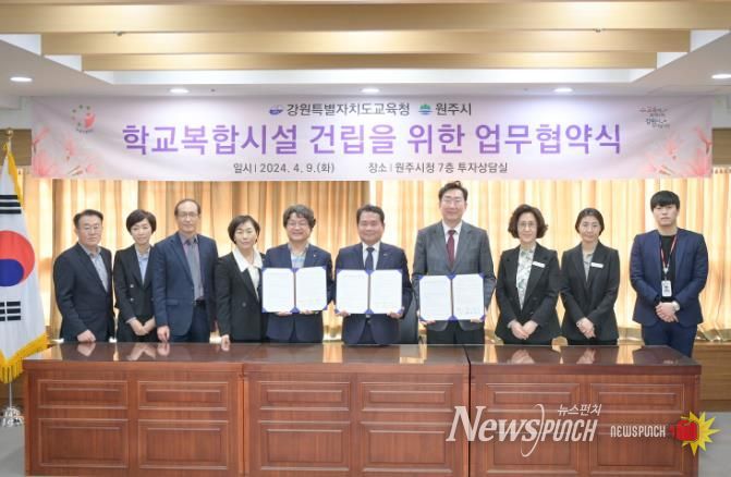 뉴스펀치 김호정 기자 | 원주시는 9일, 시청 7층 투자상담실에서 강원특별자치도교육청,원주교육지원청과 ‘원주교육지원청 현부지 활용을 위한 학교복합시설 사업’ 추진을 위한 업무 협약을 체결했다.