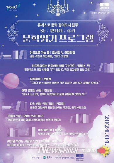 뉴스펀치 김호정 기자 | 원주시는 유네스코 문학 창의도시 사업의 일환으로 '장르문학(SF/ 판타지 / 추리) 읽기'를 운영한다.