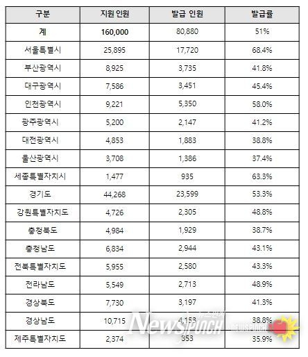 ‘청년 문화예술패스’ 발급률 51%, 총 80,880명 발급 지역별로 서울(68.4%), 세종(63.3%), 인천(58%) 순
