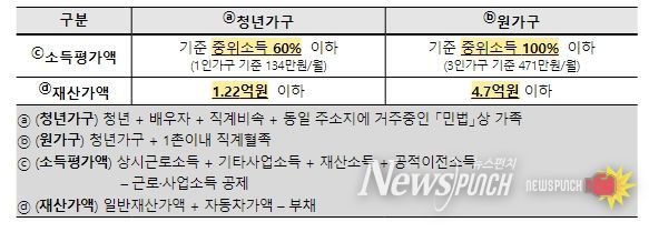 국토부는 지원의 사각지대를 해소하기 위해 거주요건(보증금 5천만원 이하 및 월세 70만원 이하)을 폐지했다.