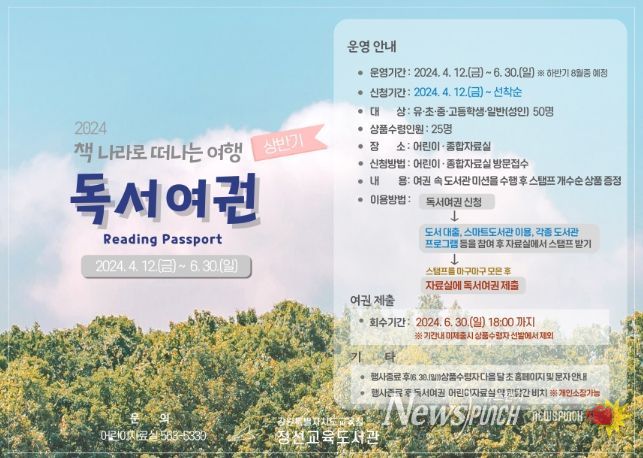 뉴스펀치 김호정 기자 | 정선교육도서관은 정선군 지역주민을 대상으로 4월 12일(금)부터 10월 31일(목)까지 상·하반기로 나누어 책 나라로 떠나는 여행 ‘독서 여권’ 프로그램을 운영한다.