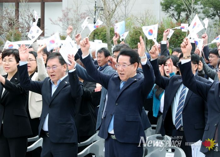 뉴스펀치 김희경 기자 | 전라남도는 11일 무안 남악에 있는 항일독립운동기념탑에서 1919년 4월 11일 수립된 대한민국임시정부의 자랑스러운 역사를 기억하고 계승하기 위한 제105주년 대한민국임시정부수립 기념식을 개최했다.
