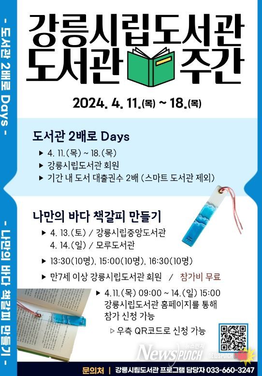 뉴스펀치 김호정 기자 | 강릉시립도서관은 2024년 도서관의 날(4.12.)과 도서관 주간(4.12.부터 18.)을 맞이하여 도서관 주간 행사를 진행한다.