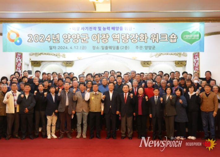 뉴스펀치 김호정 기자 | ‘2024년 양양군 이장역량강화 워크숍’이 4월 12일 10시 일출웨딩홀 연회장 2층에서 읍·면 이장 120여명이 참석한 가운데 열렸다.