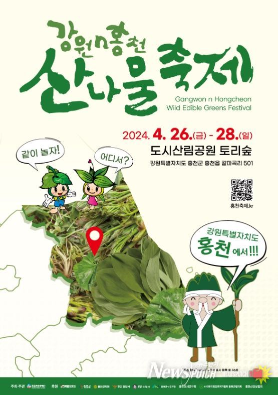 홍천문화재단(이사장 전명준)이 주최 주관하고 강원특별자치도와 홍천군이 후원하는 '강원n 홍천 산나물축제'가 오는 4월 26일부터 28일까지 3일간 도시산림공원토리숲에서 열린다.