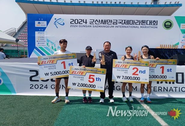 뉴스펀치 김호정 기자 | 삼척시청 육상팀은 지난 14일 열린 ‘2024 군산 새만금 국제 마라톤 대회’에서 개인전 1, 2, 5위와 단체전 1위를 거머쥐는 기염을 토했다.