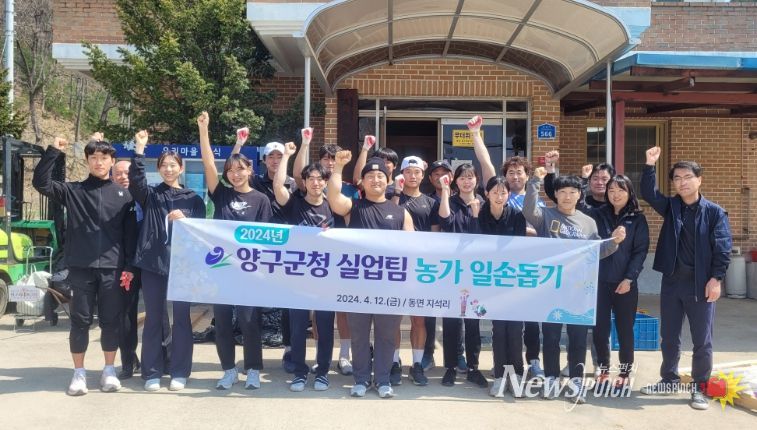 뉴스펀치 김호정 기자 | 양구군청 실업팀은 지난 12일 동면 지석리에서 지역 사랑과 지역 기여 활동의 일환으로 농촌 일손 돕기를 진행했다.