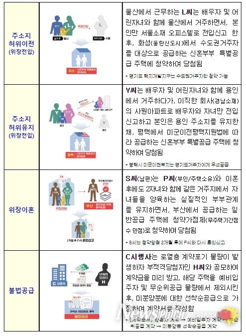 이번에 적발된 주택 공급질서 교란행위의 주요 유형은 다음과 같다.
