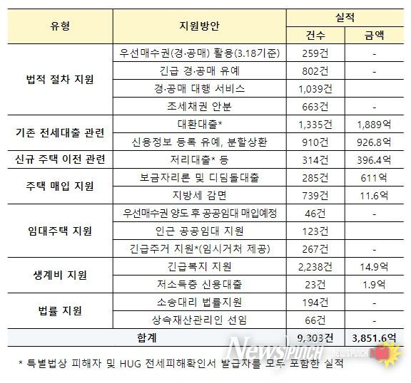 그간 위원회에서 최종 의결한 전세사기피해자등 가결 건은 총 15,433건(누계),긴급 경・공매 유예 협조요청 가결 건은 총 807건(누계)으로, 결정된 피해자등에게는 주거, 금융, 법적 절차 등 총 9,303건(누계)을 지원하고 있다.