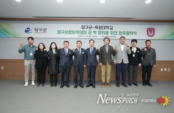 뉴스펀치 김호정 기자 | 양구군은 18일 오전 군청 회의실에서 목원대학교와 양구사랑아카데미사업 업무협약식을 개최했다.