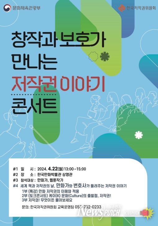 뉴스펀치 김희경 기자 | 문화체육관광부는 ‘세계 책과 저작권의 날(4. 23.)’을 기념해 한국저작권위원회와 함께 4월 22일, 한국만화박물관에서 만화가와 웹툰작가를 대상으로 ‘저작권 이야기(토크) 콘서트’를 개최한다.