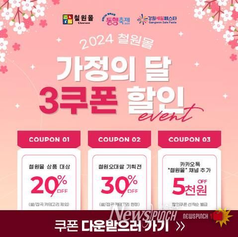뉴스펀치 김호정 기자 | 철원군 공식 온라인 쇼핑몰 ’철원몰’이 오는 5월 가정의 달 기획전을 통해 역대급 할인 이벤트를 진행한다.