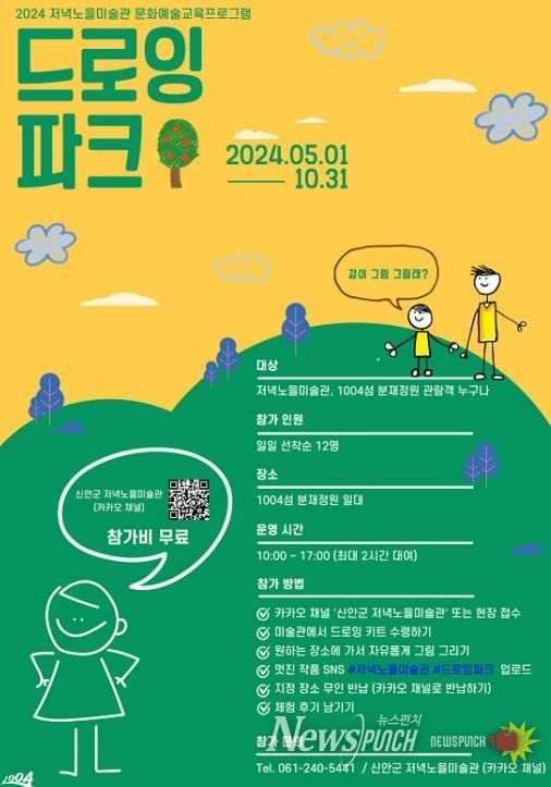 뉴스펀치 김희경 기자 | 신안군 저녁노을미술관은 다가오는 5월부터 10월까지 화구 대여 프로그램 《드로잉 파크》를 실시한다고 밝혔다.
