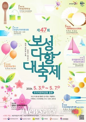 한편, 보성군은 오는 5월 3일부터 7일까지 5일간 한국차문화공원 일원에서 보성다향대축제를 비롯해 △보성군민의날, △서편제보성소리축제, △일림산 철쭉문화행사, △어린이날, △녹차마라톤대회, △한국옵티미스트 전국 요트대회, △데일리콘서트, △드론라이트쇼 등 다양한 축제를 개최한다.