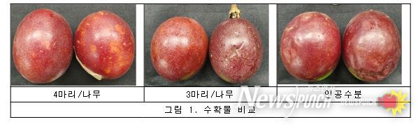 뉴스펀치 장은영 기자 | 국내 온실에서 재배하는 아열대 과수 중 두 번째로 재배면적이 넓은 패션프루트(백향과). 농촌진흥청(청장 조재호)은 뒤영벌을 이용해 패션프루트를 착과시키는 방법을 개발해 소개했다.