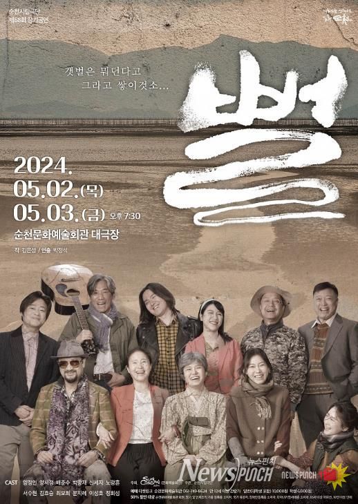뉴스펀치 김희경 기자 | 순천시는 오는 5월 2일과 3일, 이틀에 걸쳐 저녁 7시 30분 순천문화예술회관 대극장에서 순천시립극단 제68회 정기공연 '뻘'을 개최한다고 밝혔다.