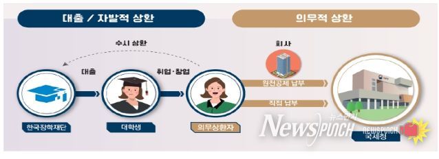 뉴스펀치 장은영 기자 | 국세청은 취업 후 학자금 대출자 중 지난해 근로소득에 따라 상환의무가 발생한 22만 명에게 ’23년 귀속 의무상환액을 4월 24일 통지한다.
