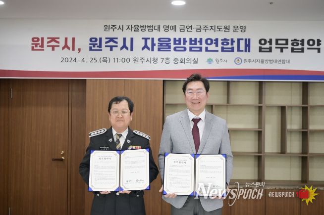 뉴스펀치 김호정 기자 | 원주시는 25일 시청 7층 중회의실에서 자율방범연합대와 금연·절주 환경 조성을 위한 업무 협약을 체결한다.