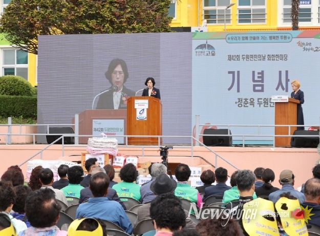 정춘옥 두원면장은 “6년 만에 개최된 이 자리를 통해 면민들이 결속과 화합을 다지고 두원면민으로서의 자부심과 긍지를 느낄 수 있는 뜻깊은 자리가 됐길 바란다”며 “두원면 지역발전과 행복한 면정, 따뜻한 면정을 펼쳐나가는 데 최선을 다하겠다”고 말했다.