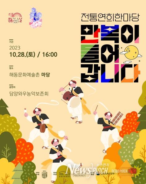 뉴스펀치 고서아 기자 | (재)담양군문화재단은 오는 28일 토요일 오후 4시 해동문화예술촌 마당에서‘전통연희한마당 : 만복이 들어갑니다’를 개최한다고 밝혔다.
