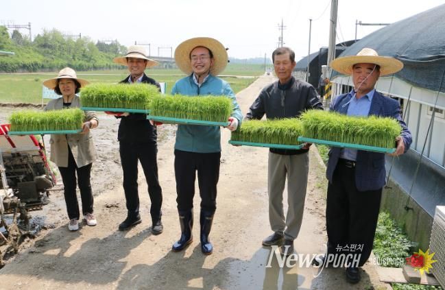 뉴스펀치 김희경 기자 | 전라남도 나주시는 지난 30일 노안면 장동리에서 올해 벼농사의 시작을 알리는 조생종 벼 모내기 행사를 가졌다고 1일 밝혔다.