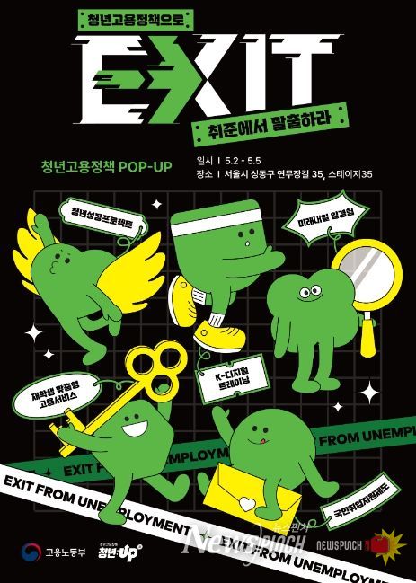 뉴스펀치 장은영 기자 | 고용노동부는 청년들에게 친근한 방식으로 정책을 홍보하기 위해 ‘청년고용정책 팝업스토어’를 5월2일부터 5월5일까지 4일간 성수동 스테이지35에서 운영(12시~20시)한다. 팝업스토어를 통한 홍보는 작년 고용노동부 청년인턴 홍보아이디어 경진대회에서 수상한 것으로 프로그램 기획단계부터 청년보좌역과 2030자문단원이 참여하여 청년들이 직접 만든 프로그램이다.