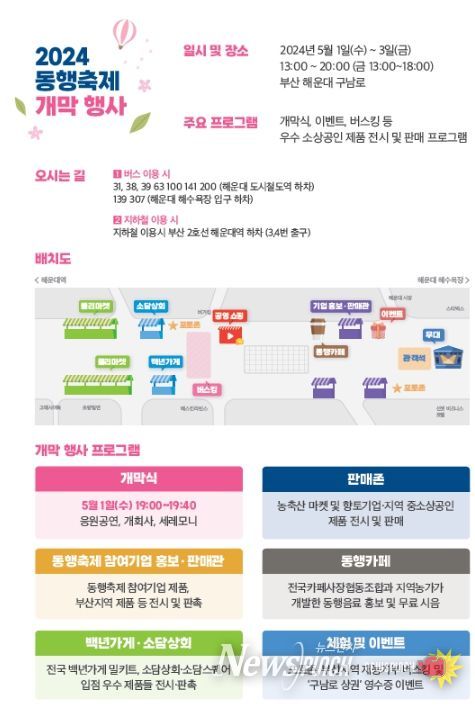 5월 1일부터 3일까지 메인 행사장인 구남로 광장(해수욕장에서 해운대역 방면)에서 동행제품 전시·판촉 부스, 농축수산물마켓, 버스킹공연·이벤트 행사 등을 통해 3일간 살거리·볼거리·즐길거리가 풍성한 축제가 열린다.