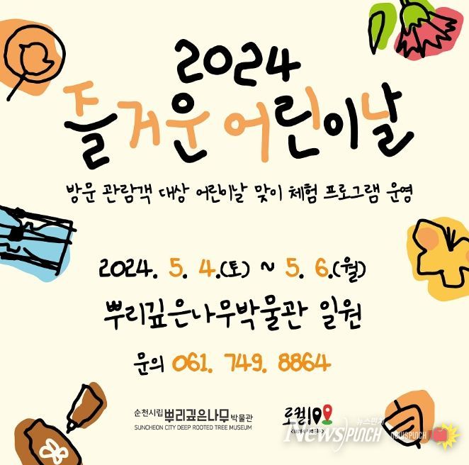 뉴스펀치 김희경 기자 | 순천시립뿌리깊은나무박물관에서는 오는 4일 토요일부터 6일 월요일까지 자라나는 새싹들을 위한‘2024 즐거운 어린이날’문화행사를 개최한다고 밝혔다.