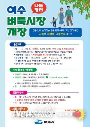 판매 참가를 원하는 시민은 오는 5월 7일까지 여수시OK통합예약 홈페이지또는 팩스로 신청할 수 있다.