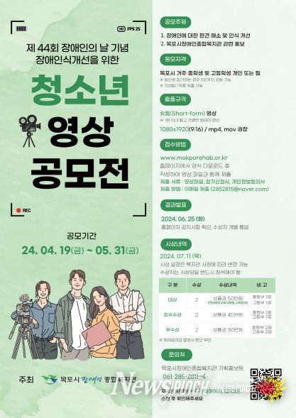뉴스펀치 김희경 기자 | 목포시장애인종합복지관은 제44회 장애인의 날을 기념하여 "장애인식개선 청소년 영상 공모전"을 실시한다고 밝혔다.