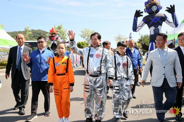 인류의 위대한 비상 ‘지구인에서 우주인으로’라는 슬로건을 내건 이번 축제는 공영민 군수와 지역민, 그리고 미래 주인공인 어린이가 하나 돼 우주를 향한 힘찬 걸음을 내딛는 입장 퍼포먼스로 개막식을 대신하며 우주촌 축제의 문을 활짝 열었다.