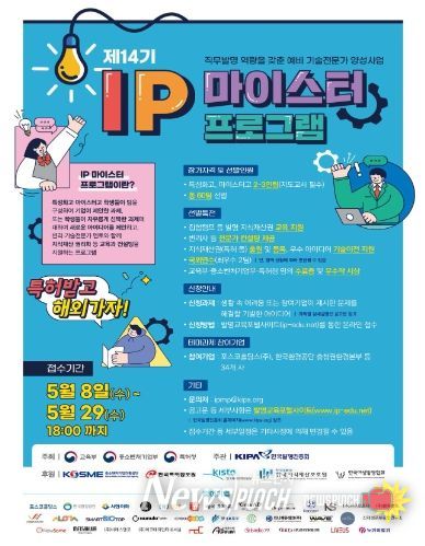 뉴스펀치 장은영 기자 | 특허청은 교육부·중소벤처기업부와 공동으로 5월 8일부터 직업계고 학생들의 참신한 아이디어를 발굴해 특허출원부터 사업화까지 지원하는 ‘제14기 지식재산(IP) 마이스터 프로그램’ 참가자를 모집한다고 밝혔다.