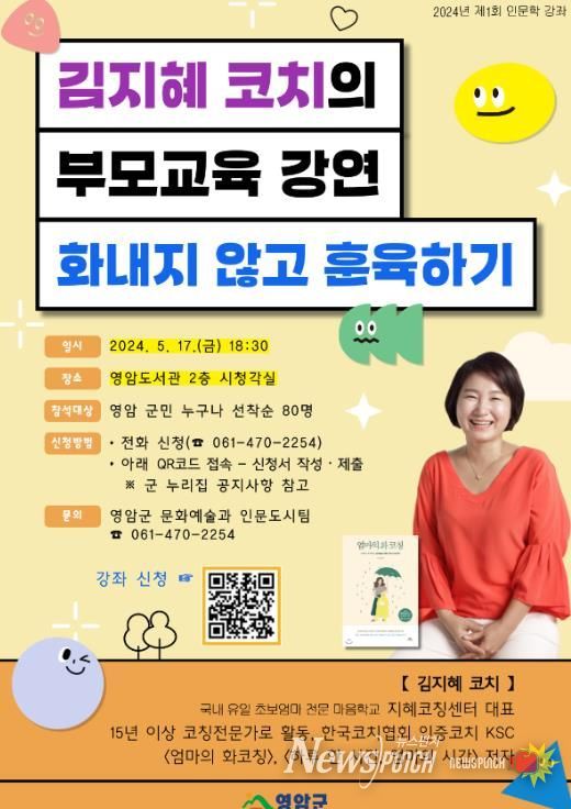 뉴스펀치 김희경 기자 | 영암군이 5/17일 김지혜 강사의 ‘화내지 않고 훈육하기’로 ‘2024년 정기 인문학 강좌’에 돌입한다.