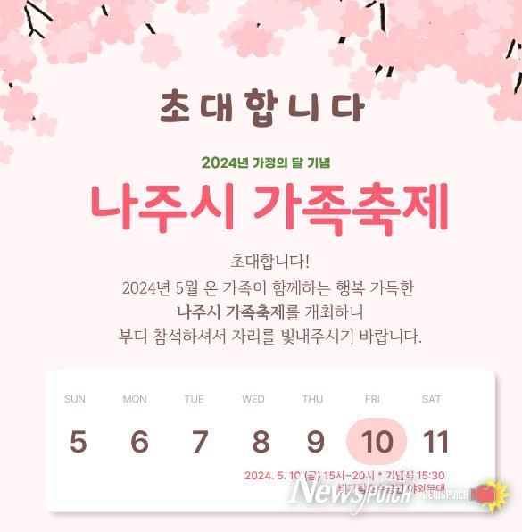 뉴스펀치 김희경 기자 | 전라남도 나주시가 가정의 달을 맞아 10일 빛가람호수공원에서 온 가족이 함께하는 ‘나주시 가족축제’를 개최한다고 8일 밝혔다.
