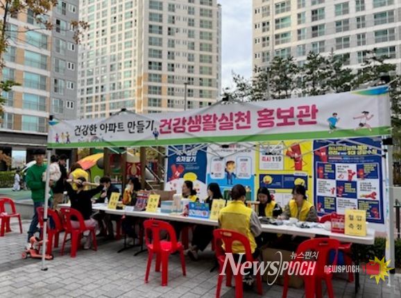 뉴스펀치 임정용 기자 | 울주군 남부통합보건지소가 24일 청량읍 덕하신일해피트리 아파트에서 남부권 건강한 아파트 만들기 홍보관을 운영했다.