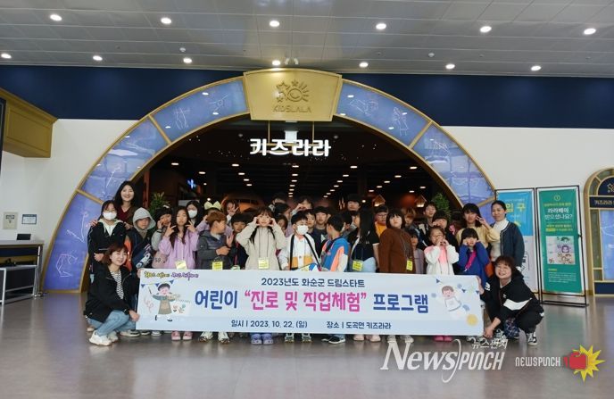 뉴스펀치 고서아 기자 | 화순군 드림스타트는 지난 22일 드림스타트 아동 36명과 도곡 어린이 테마파크 ‘키즈라라(Kids lala)’를 방문해 다양한 진로·직업 체험 행사를 진행했다.