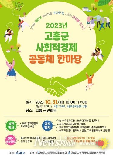뉴스펀치 고서아 기자 | 고흥군은 오는 31일 ‘고흥군 사회적경제·공동체 한마당’을 고흥 군민회관에서 개최한다고 밝혔다.