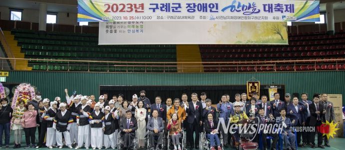 뉴스펀치 고서아 기자 | 전남 구례군은 10월 25일 구례군 실내체육관에서 장애인 화합과 지역사회 통합을 위한‘2023년 구례군 장애인 한마음 대축제’를 개최했다고 밝혔다.
