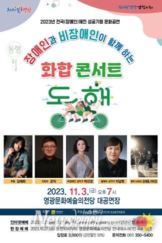 뉴스펀치 고서아 기자 | 영광군은 오는 11월 3일 오후 7시 영광문화예술의전당 대공연장에서 2023년 전국(장애인)체전 성공기원 문화공연으로 장애인과 비장애인이 함께하는‘화합 콘서트 동행’을 공연한다.