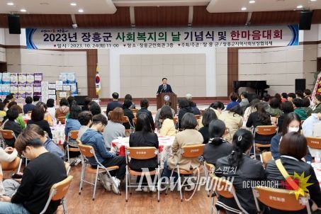 뉴스펀치 고서아 기자 | 장흥군은 24일 군민회관에서 사회복지 종사자들의 노고를 격려하기 위해 ‘2023년 사회복지의 날 기념행사와 한마음 대회’를 개최했다고 밝혔다.