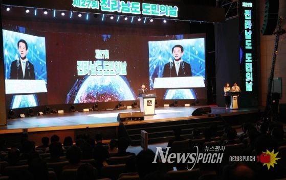 뉴스펀치 고서아 기자 | 전라남도는 25일 도청 김대중강당에서 200만 도민 소통과 화합의 장인 ‘제27회 도민의 날’ 기념식을 열어 ‘자랑스러운 전남인 상’을 시상하고, ‘하나된 전남! 행복한 전남! 새로운 전남!’을 힘차게 열어갈 것을 다짐했다.
