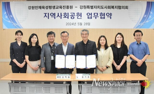 뉴스펀치 김호정 기자 | 강원인재육성평생교육진흥원은 5월 28일, 강원특별자치도사회복지협의회와 업무협약을 체결했다.