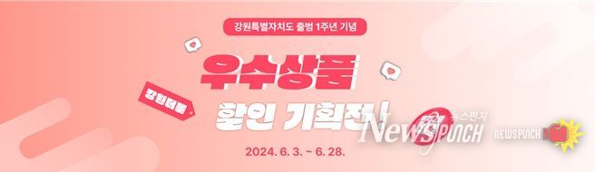 뉴스펀치 김호정 기자 | 강원특별자치도 공식 온라인 쇼핑몰 ‘강원더몰’에서 강원특별자치도 출범 1주년을 맞이하여 6월 3일부터 6월 28일까지 특별기획전을 실시한다.