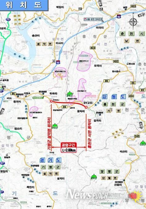 뉴스펀치 김호정 기자 | 홍천군은 국지도86호선 동막에서 개야(널미재 터널) 도로건설공사 사업이 기획재정부의 타당성 재조사를 통과했다고 밝혔다.