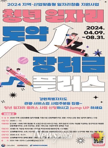 원홍식 강원특별자치도 경제국장은“본 사업을 통해 청년은 수도권과의 임금격차 해결로 인구 유출을 막고, 코로나19 종식 이후 활성화되고 있는 관광·서비스 기업은 우수한 청년 인력을 확보하게 될 것을 기대한다”고 밝혔다.