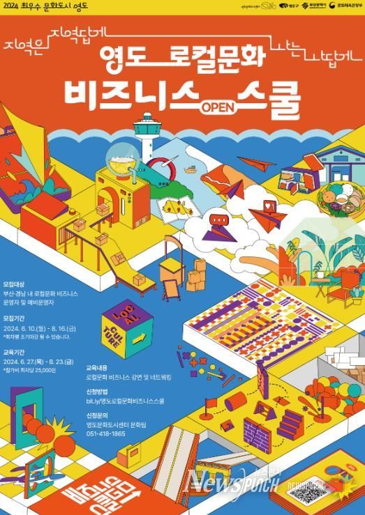 뉴스펀치 박상훈 기자 | 영도문화도시센터는 오는 6월 10일 월요일부터 8월 16일까지 '2024 영도 로컬문화 비즈니스 스쿨'에 참여할 부산·경남 내 로컬문화 비즈니스 운영자 및 예비 창업가를 모집한다.