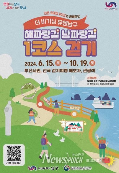 뉴스펀치 박상훈 기자 | 부산 남구는 문화체육관광부 주관 코리아둘레길 쉼터 및 연계 프로그램 지원 공모사업으로 “더 비기닝 유엔남구 해파랑길 남파랑길 걷기 프로그램”을 운영한다.